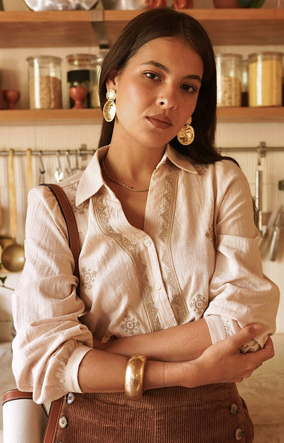 CHEMISE COTON BEIGE BRODÉE ALTEA
