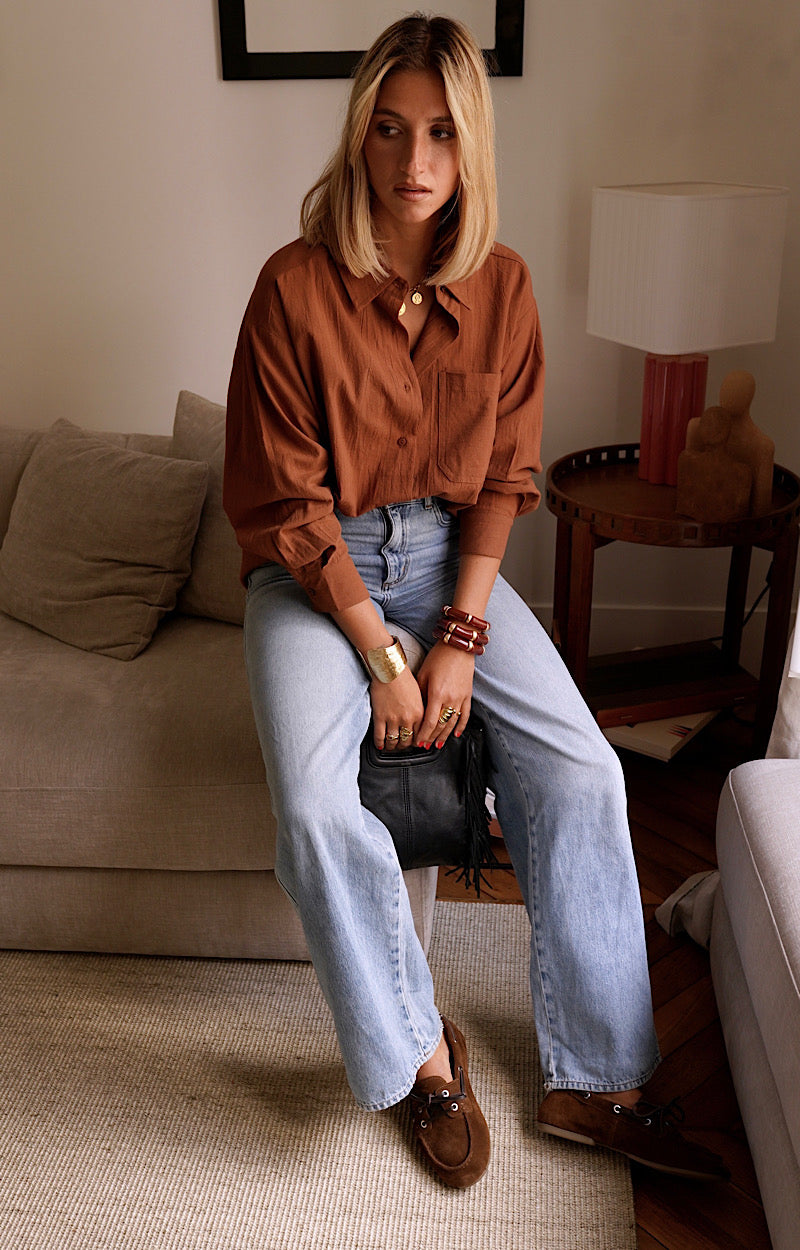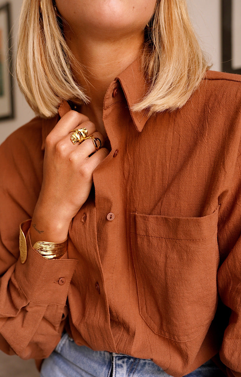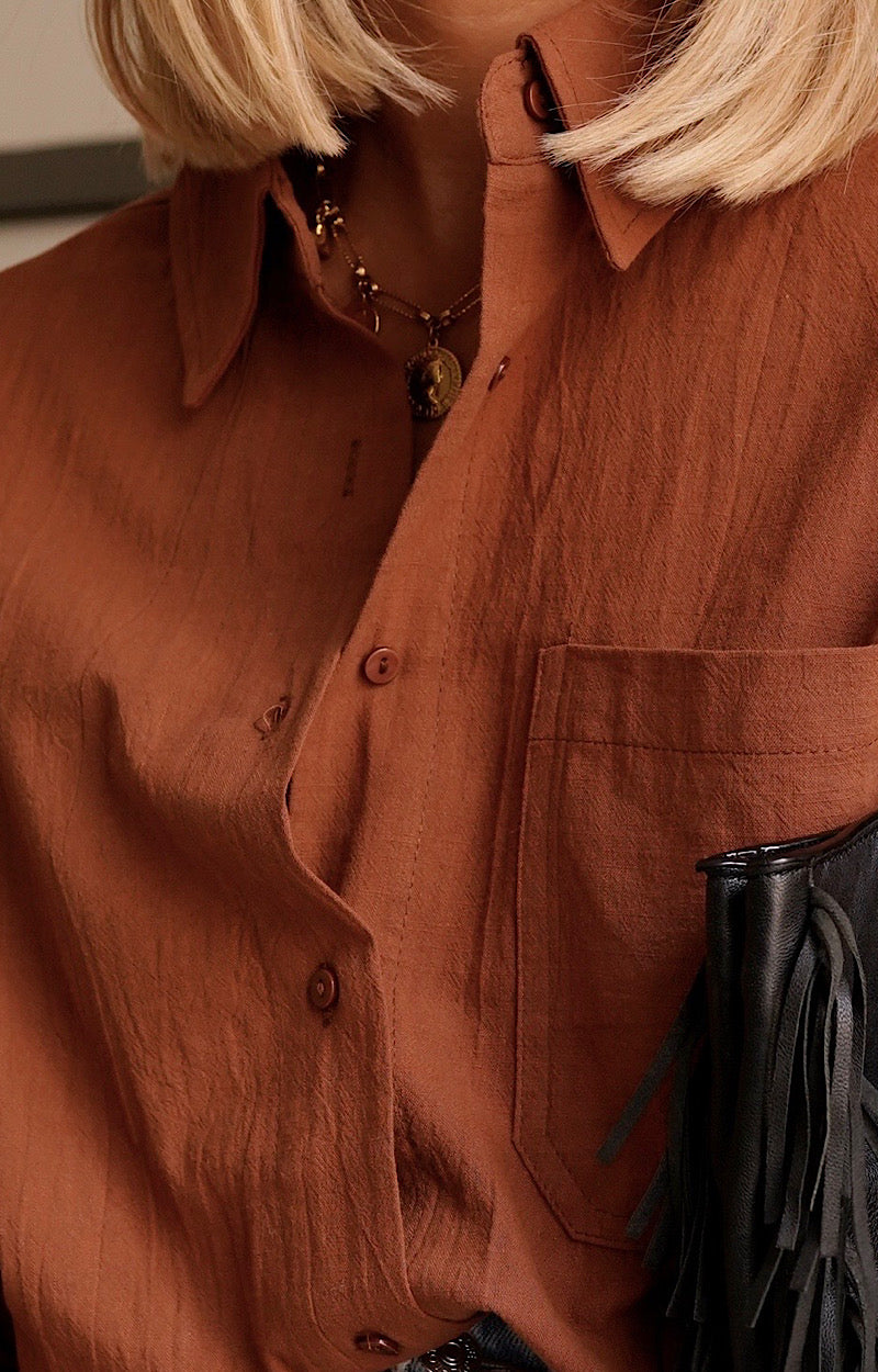 C'est une très belle chemise en coton uni avec une poche et elle est facile à mettre pour tous les jours.